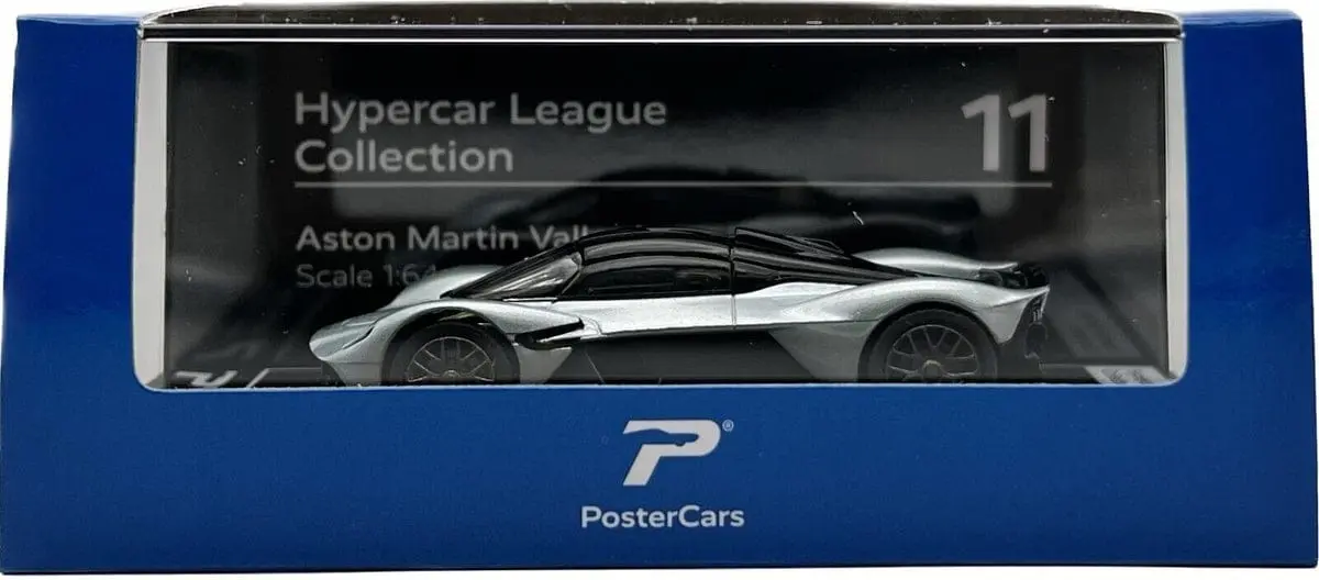 1:64 scale diecast model of the Aston Martin Valkyrie from the PosterCars Hypercar League Collection.