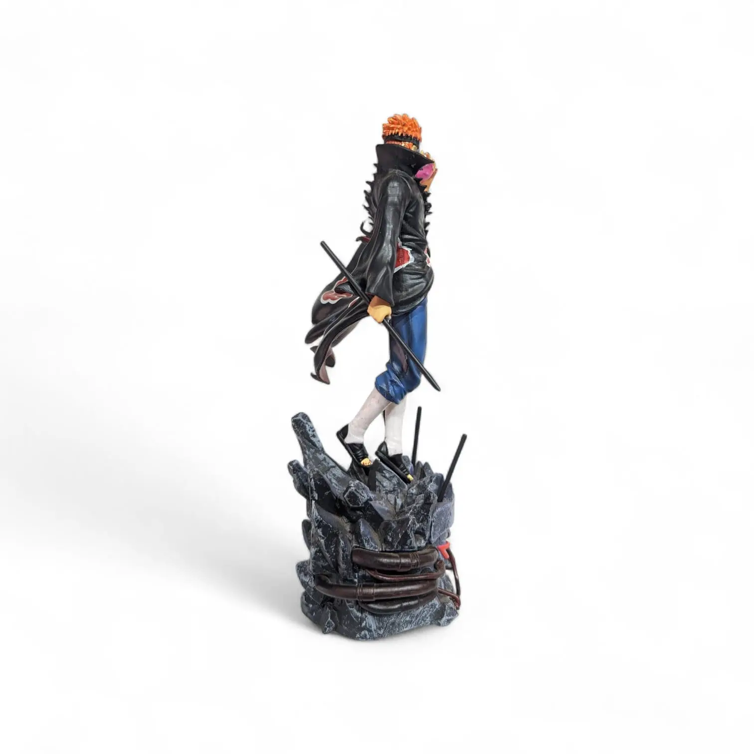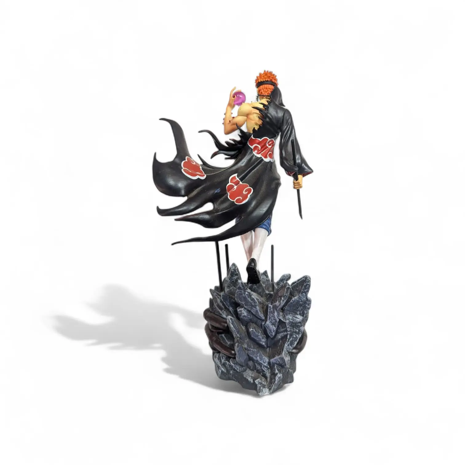 This highly detailed collectible is meticulously crafted to replicate Pain’s signature look, including his Rinnegan eyes, spiky orange hair, and the distinct Akatsuki cloak. The figure is posed dynamically, standing on a meticulously sculpted base that represents the debris from his ultimate technique, Chibaku Tensei. The level of detail on the figure and the base brings the iconic scene to life.