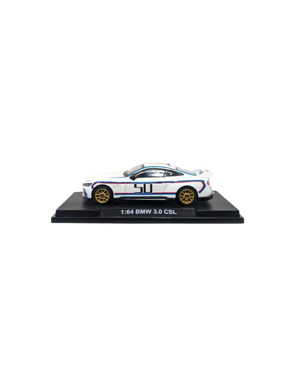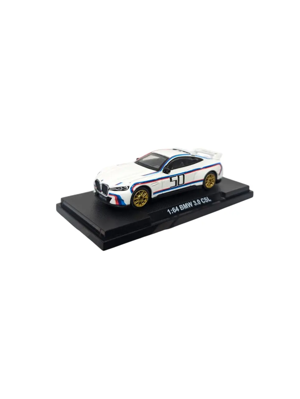* **Racing Heritage Details:** It prominently displays the number **”50″** on the doors, signifying five decades of BMW Motorsport. The design includes the distinctive rear wing and roof spoiler that pay homage to the original E9 CSL.