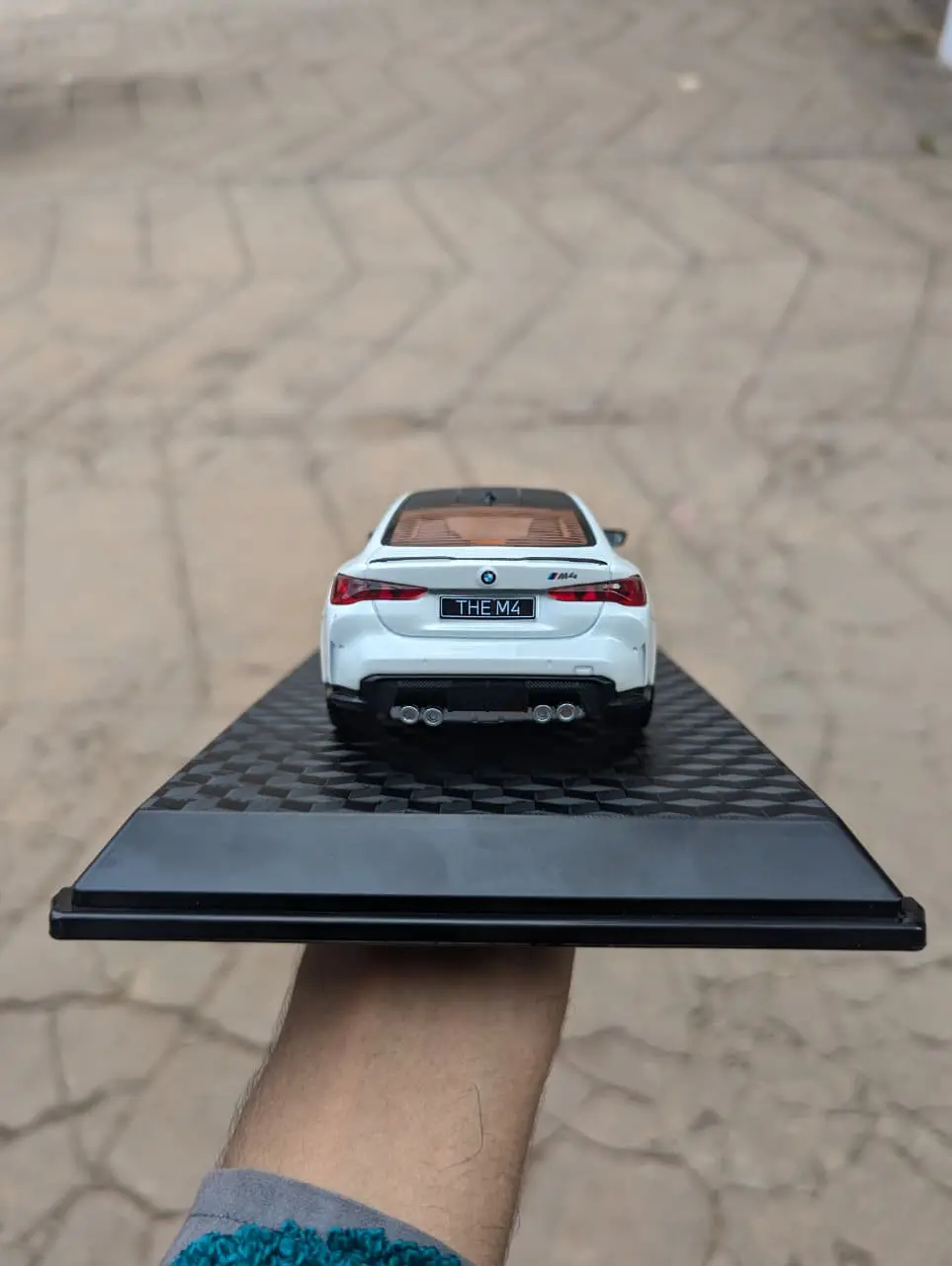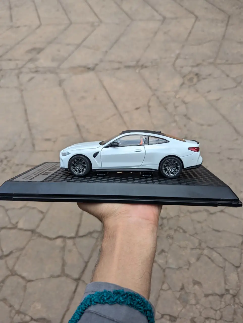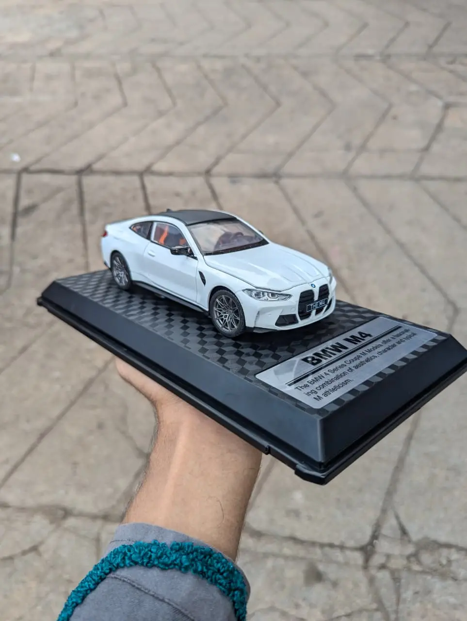 Finished in a sleek white color, this detailed replica captures the aggressive styling of the M4 with precision — featuring the signature sporty coupe silhouette, sharp body lines, sporty alloy wheels, detailed headlights, and realistic interior. The model showcases the bold front design and performance-inspired stance that makes the BMW M4 a true icon.