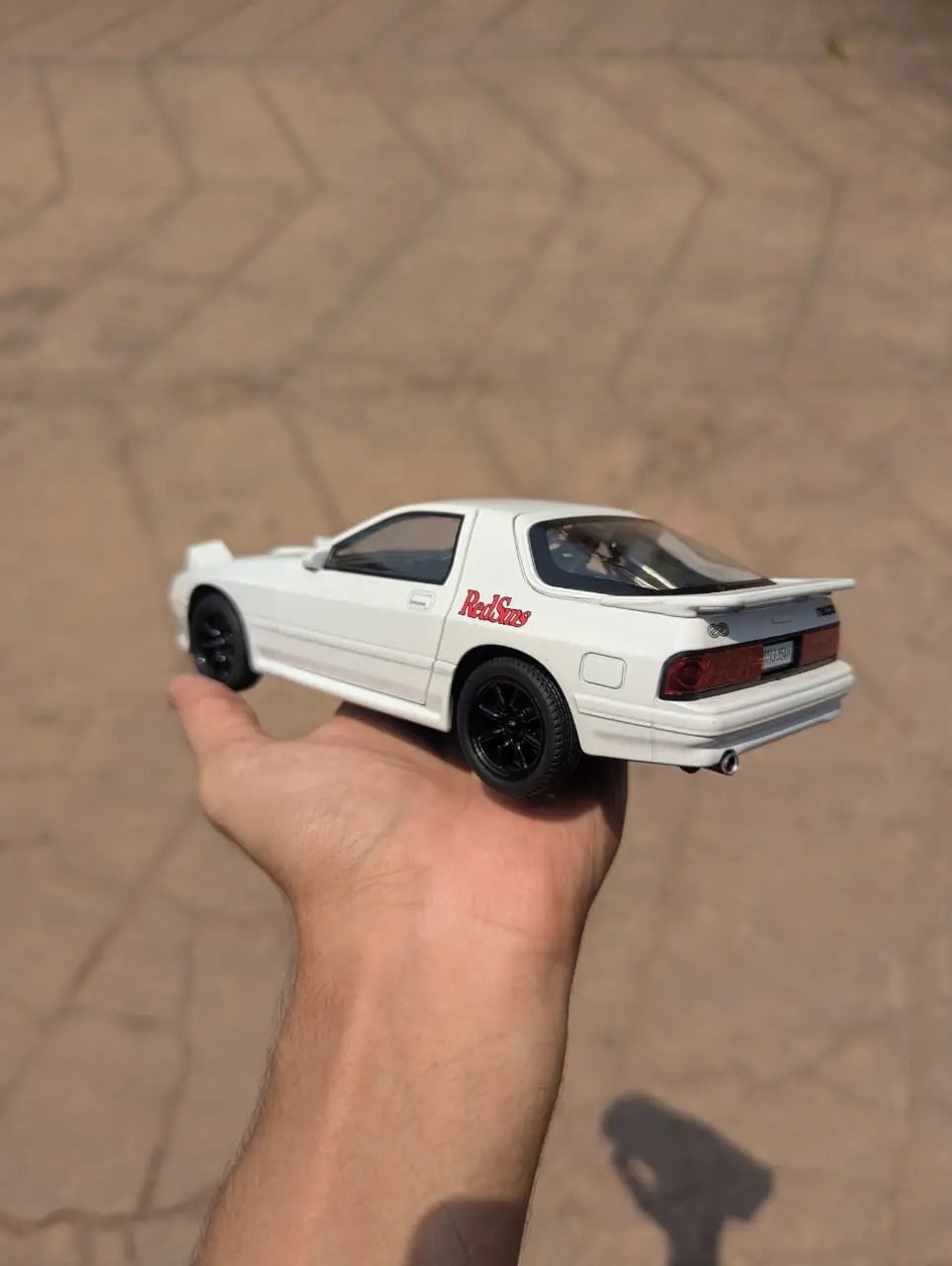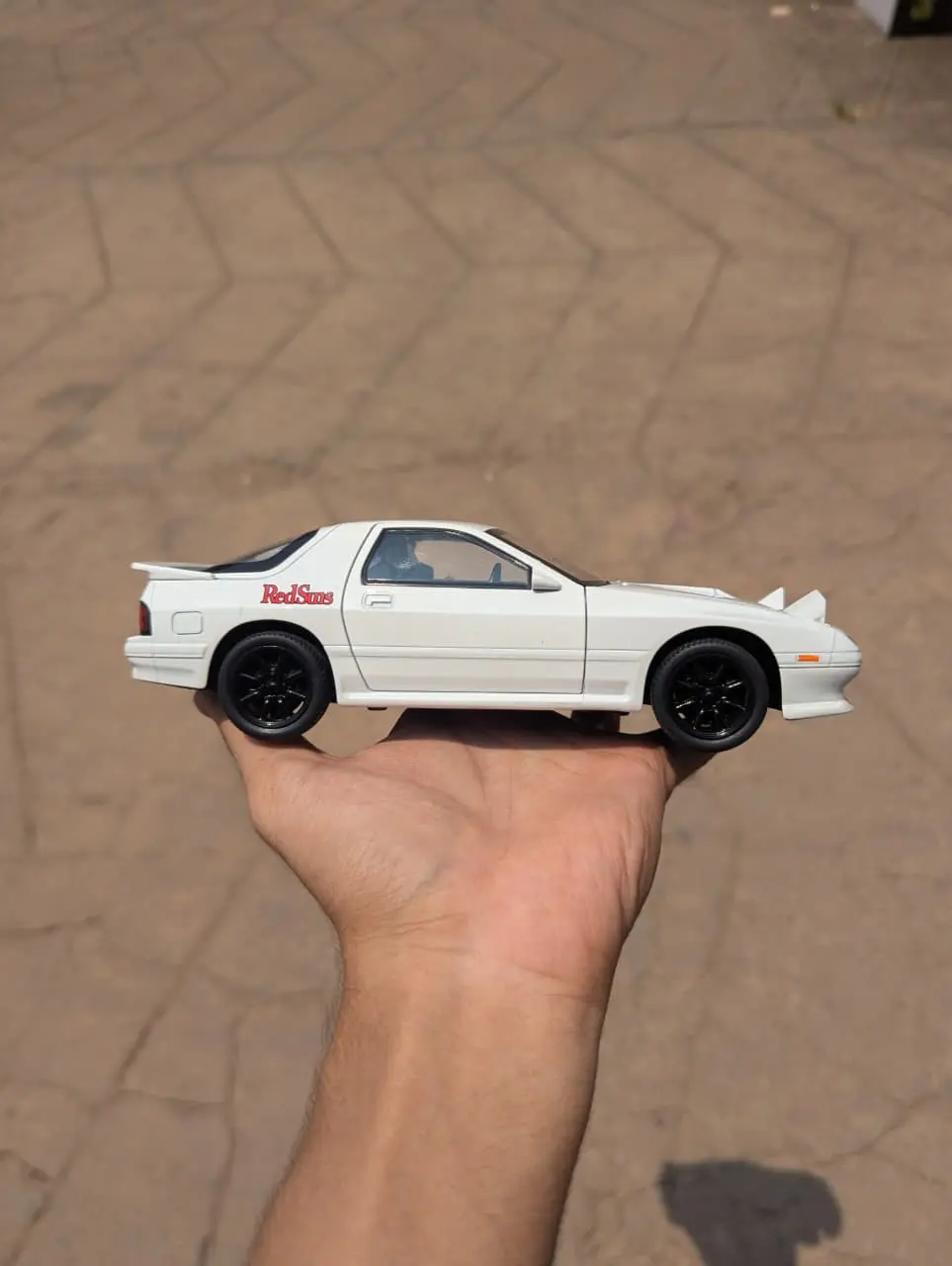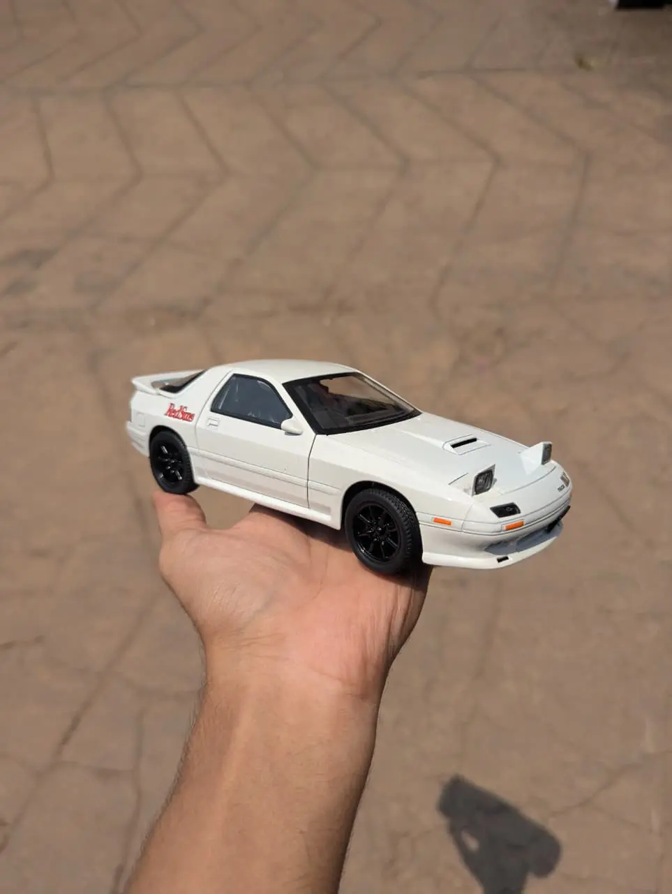 The second image you’ve uploaded appears to be a 1:24 scale die-cast model of a Mazda RX-7 (FD3S) with an RE Amemiya body kit.