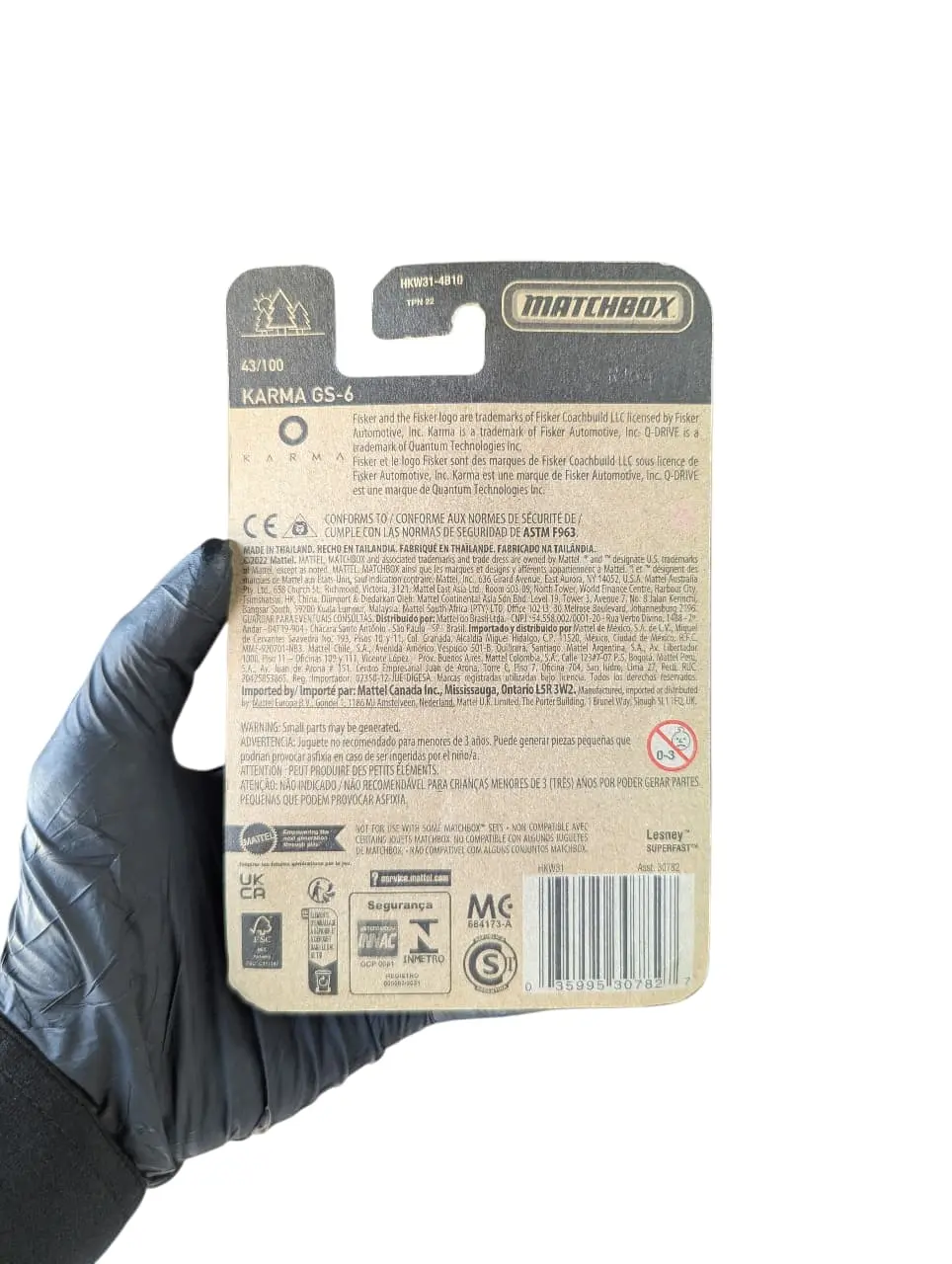 This item is a Matchbox Karma GS-6 diecast car from the 70th Anniversary series, specifically number 43 of 100.