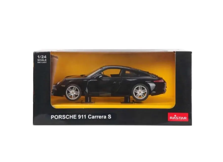 The Porsche 911 Carrera S diecast model by Rastar is a beautifully detailed collectible that captures the iconic design and performance spirit of the legendary Porsche sports car. Crafted in 1:24 scale, this model features a sleek black finish that highlights the timeless curves and aerodynamic styling of the 911.